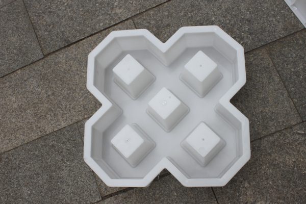 此款路面磚模具主要采用了雙八字五孔植草設計,使用聚丙烯塑料原料注塑加工而成。因其特殊的模具結構設計,可植草空間相比其他植草磚模具大大增多,直觀可見停車場專用路面磚模具所制路面磚單一植草空隙有五處,如果組合拼接鋪設,更可多增加四處,對于大面積停車場的綠色建設工程優勢明顯。