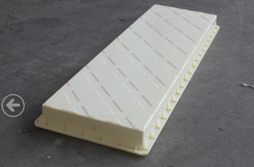 此款為黑龍江哈(哈爾濱)佳(佳木斯)高鐵線路專用的水泥基蓋板模具,采用全新ABS塑料為原料,以菱形防滑設(shè)計為主體,模具內(nèi)部亦有小型鐵標(biāo)設(shè)計,由于水泥基蓋板模具尺寸較長較大,主要應(yīng)用場所為步板等相關(guān)行道鋪設(shè)。