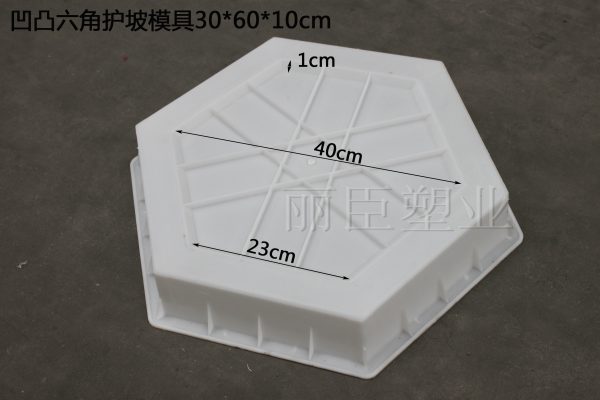 除此樣式的六角護(hù)坡磚塑料模具之外,麗臣塑業(yè)一樣提供其他樣式用途的護(hù)坡磚模具。比如用在高鐵高速線路上的拱形護(hù)坡磚模具,用在河道及堤壩附近的水利連鎖護(hù)坡磚模具,又或是構(gòu)件各種生態(tài)系統(tǒng)的生態(tài)護(hù)坡磚模具等等。
