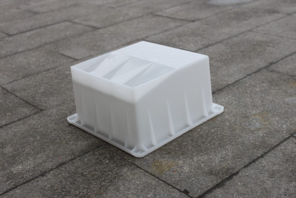 水泥側石塑料模具主要以坡型結構設計,采用全新聚丙烯塑料原料加工而來。采用此款側石塑料模具預制所得水泥側石成品以梯形坡面樣式,易接觸直角以R2圓弧防撞設計,一個是方便水泥側石成品脫模,另外一個則是車輛安全行駛考慮。