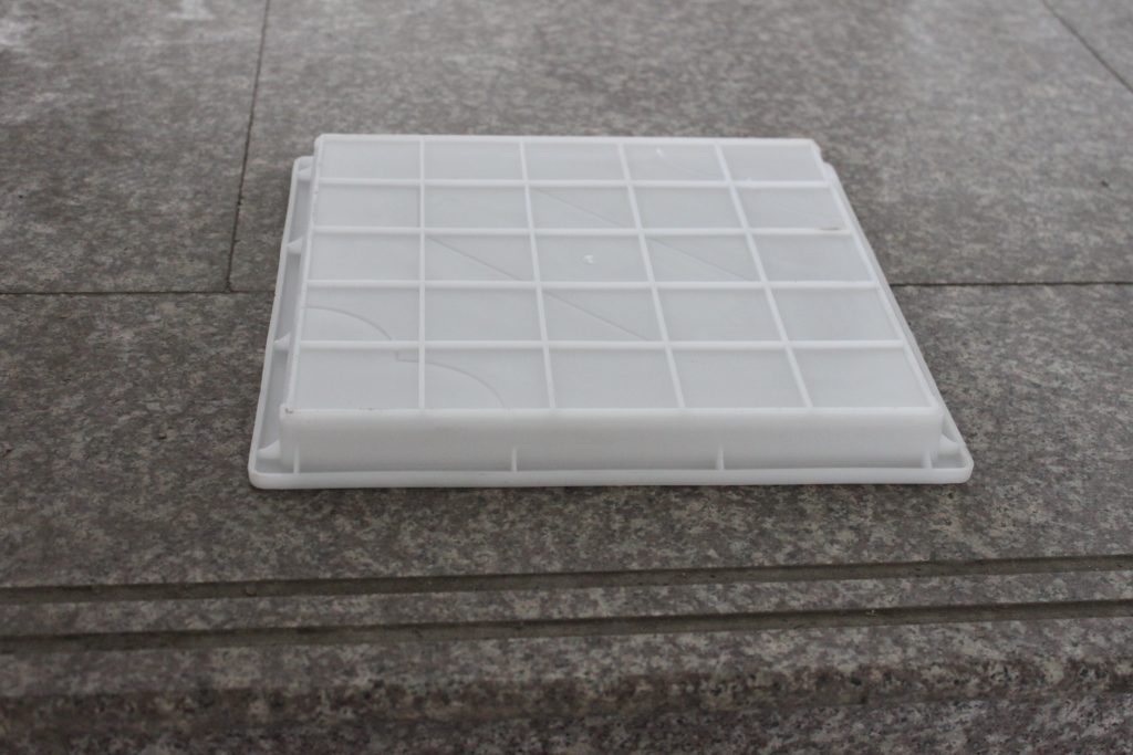 塑料彩磚模盒多以ABS或者PP聚丙烯塑料加工而來,此款采用聚丙烯原料,主要以四拼結(jié)構(gòu)的梅花防滑圖案設(shè)計(jì),在塑料彩磚模盒底部布置了5X5正方形結(jié)構(gòu)的小方格加強(qiáng)筋,四周每條邊則是四條小三角加強(qiáng)筋,有效的提升了梅花圖案彩磚模盒在預(yù)制過程中的穩(wěn)定性。