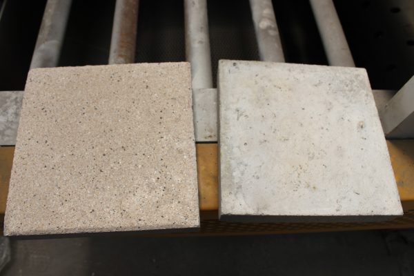 1.先使用塑料模具來澆筑成型的混凝土彩磚,對(duì)于預(yù)制成型的混凝土彩磚進(jìn)行模具的脫模,放置一旁得以備用,下面這張圖是主要能更清楚的看出使用混凝土路面拋丸機(jī)后的水泥磚表面。