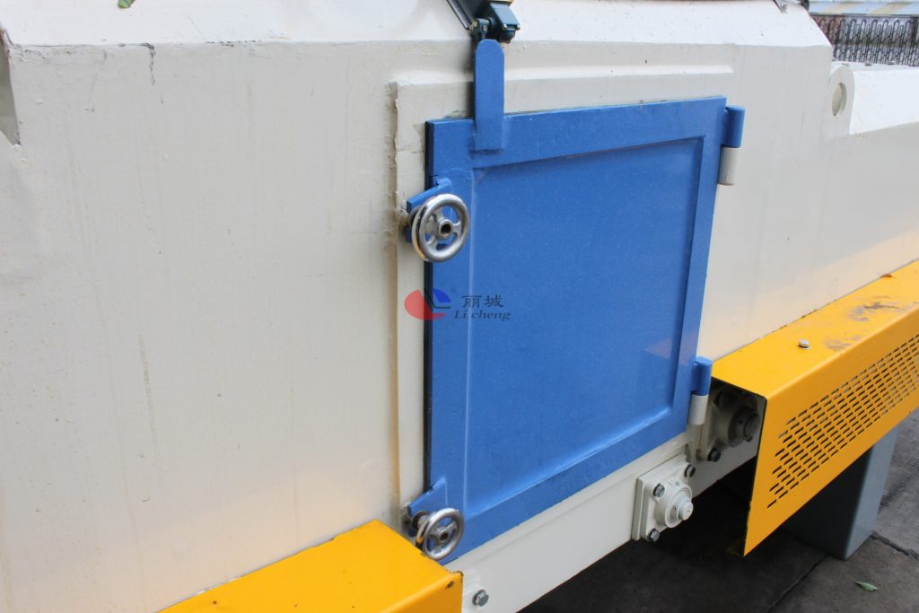 4.在將水泥地磚輸送至混凝土路面拋丸機(jī)內(nèi)部中后,通過使用步道磚模具澆筑成型的混凝土步道磚,受到來自空間結(jié)構(gòu)的不同方向的拋頭的密集強(qiáng)力彈丸的打擊與摩擦,使其其表面毛化,美飾。地面磚表面獲得一定的粗糙度的光潔表面,路面拋丸機(jī)在工作時(shí),工作人員需要遠(yuǎn)離室體進(jìn)出口處,防止彈丸飛濺入眼,并需要進(jìn)行掛牌警示。