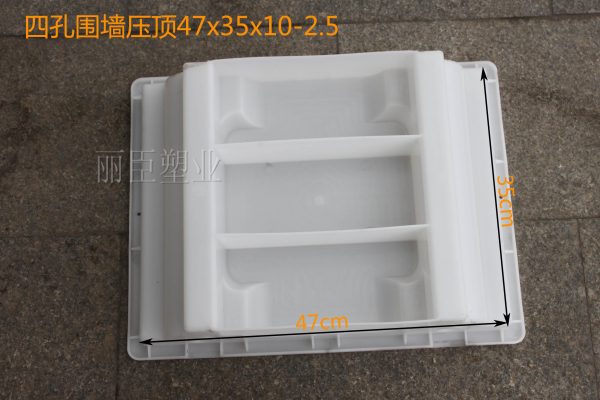 圍墻四孔壓頂模具在注塑用料上采用聚丙烯塑料為主要生產原料,其模具的尺寸為47x35x10-2.5,毛面主要以長方形為主,對模具進行脫模過程中,脫模夾的使用要求不高,且壓頂模具的性能優越獲得了廣大用戶的追捧。