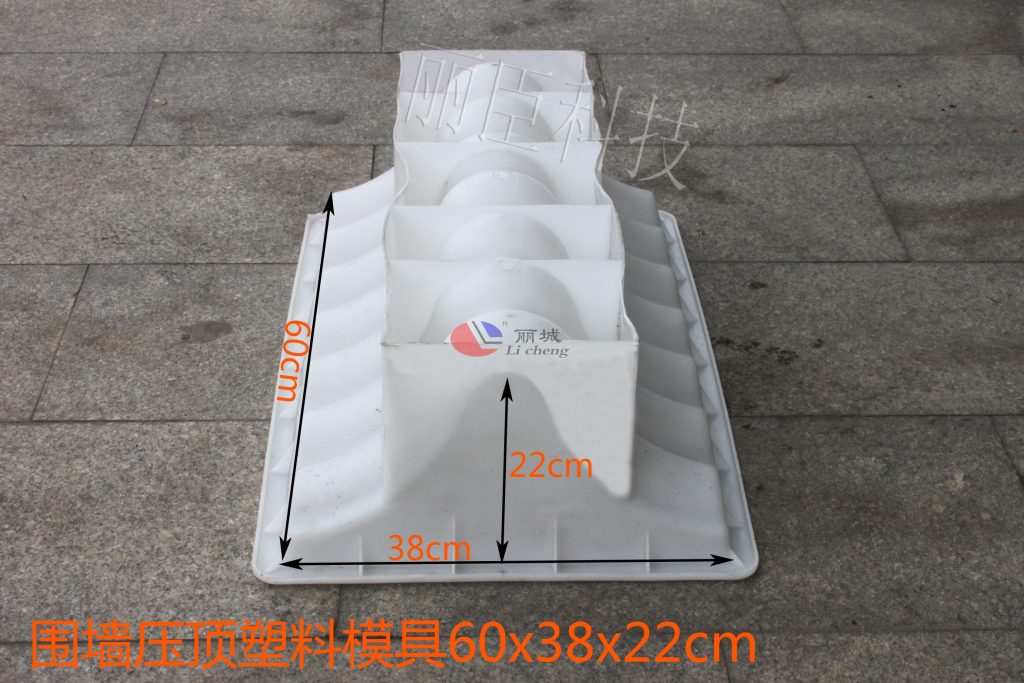 圍墻壓頂塑料模具的款式有很多種,這款為墻壓頂與麗臣科技往常生產的圍墻壓頂塑模稍微有些不同,風格偏為復古風格,所以在銷售過程中,業務員將其取名為仿古圍墻壓頂模具。