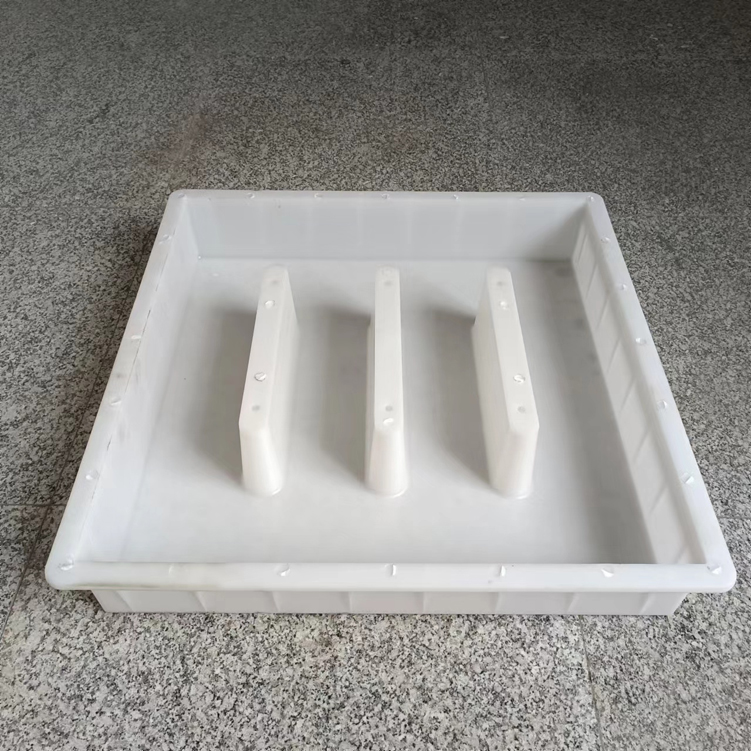 三孔雨水蓖塑料模具,模具采用米白色PP材質制成,模具尺寸為60cm*60cm*11cm,模具開始設計尺寸為60cm*60cm*10cn,因為需要充分達標,所以模具厚度尺寸實際尺寸比設計尺寸厚1cm,模具采用三孔設計,具體尺寸如下設計圖。主要用于道路下水使用,且厚度厚,可以承載較大的壓力。